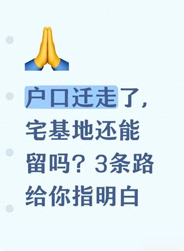 户口迁走了,宅基地到底该咋处理?主要就3条路,根据你自己的情况选就行,每条路的政策要求都不一样,得慢慢说。